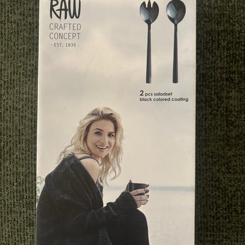 Salatbestikk InHouse stål med svart håndtak ubrukt - ligger i eske