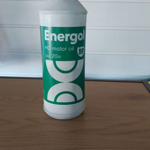 BP rundt skilt i grønn farge med store bokstaver "BP" i midten.
