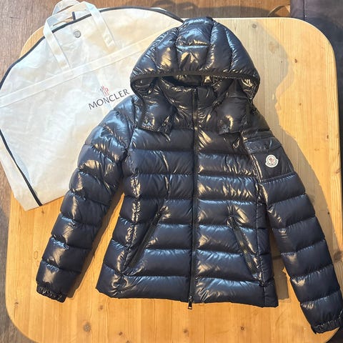 Moncler bady for dame i størrelse 2 som tilsvarer S-M. Jakken er svart og fylt med dun. Den har glidelåslukking foran, hette og sidelommer. Klassisk quiltet design med Moncler-logo på ermet og illustrert vaskeanvisning på innsiden. Egnet som varm ytterjakke i kaldt vær og passer fint til våren. Den er kjøpt for et par år siden og jeg har dessverre ikke kvittering. Selges derfor som den er.