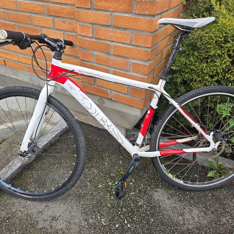 DBS Intruder LX3000 sykkel i størrelse XL med 26" hjul for unisex bruk. En godt brukt, lett vintage sykkel av merke Intruder med piggdekk på Rammestørrelse 22´´. Har noen bruksmerker på rammen, men har fått et ganske nytt, justerbart styre, nye bremser bak, mye bremser foran, full service. Sykkel fungerer aldeles godt! Fåes med det cykelhandbok, originale styrefestet, +2 helårsdekk . For- og baklykter, sykkelklokke, stor sykkelveske, pumpe, plattformpedaler i aluminium, vanntett sete, Sykkelen har rød ramme og er egnet til variert bruk på vei og lett grus. Leveres med skjermer, bagasjebrett og lys slik det fremkommer på bildene. Egen sykkelhåndbok og eierbevis følger med, med modellbetegnelse Intruder LX3000 og rammestørrelse 22". Sykkelen passer for voksne som ønsker en hybrid mellom bysykkel og terrengsykkel, med oppreist sittestilling og dekk tilpasset både asfalt og enklere terreng.