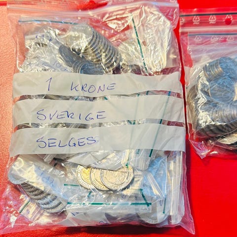 Totalt 1,2 kg , ca 600 mynt , kan sendes , kjøper betaler porto