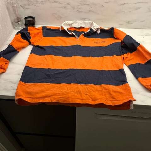 Lindex Holly & Whyte skjorte for dame i størrelse M. Skjorten er laget i bomull og har flerfarget, horisontalt stripemønster med hovedfarge i rødt, kombinert med mørkeblå og hvite striper. Modellen har lang arm og hvit krage. Passer til hverdagsbruk eller fritid, og kan kombineres med både bukser og skjørt. Splitt i sidene, litt lengre bak. Ikke brukt eller vasket.