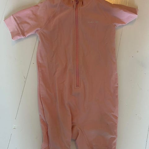Stripete badedrakt med glidelås i front. Dus rosa og kvite striper. Lite og fint brukt nokre svake bittesmå prikkar i mageområdet, sikkert etter ein kryperunde. 😅