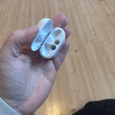Apple trådløse ørepropper i hvit farge. Øreproppene leveres med et kompakt ladeetui i matchende farge. Passer til trådløs lytting til musikk, tale og annet lydinnhold fra kompatible enheter via Bluetooth eller tilsvarende trådløs tilkobling. Designet for å være lette og enkle å ta med seg i lommen eller vesken.