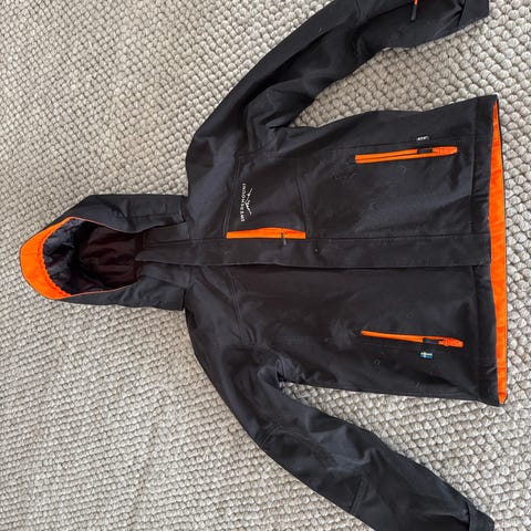 Bjørn Dæhlie softshelljakke, grå og oransje med hette i størrelse L selges da den ikke blir brukt. Jakken har hel glidelås foran, justerbar hette og flere glidelåslommer. Mansjetter med ribb ved håndledd gir bedre passform. Innsiden har meshfôr for bedre komfort og ventilasjon. Egnet som ytterjakke til hverdagsbruk og utendørsaktiviteter for eksempel langrenn i kjølig vær.