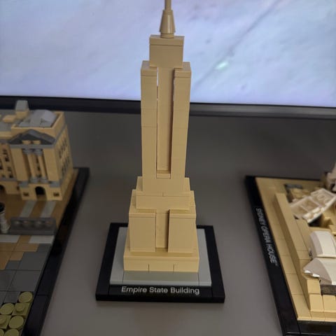 Settet er bygget opp komplett etter instruksjonene og stått på hylle til utstilling siden.