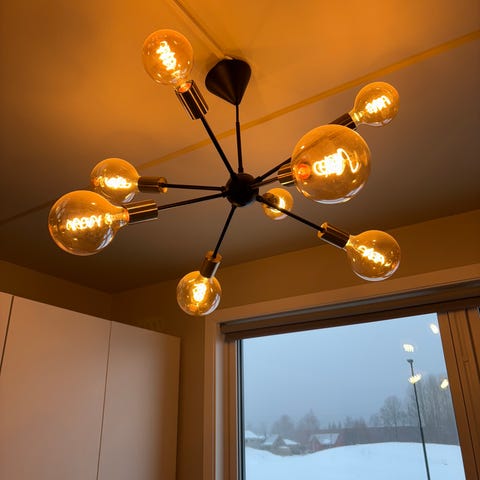 Taklampen Sputnik har plass til 8 lyspærer, E27-sokkel. Lyspærer følger ikke med.