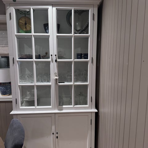 Skapet er malt, dørene er frostet men det er bare å vaske av. Skapet er stilig i seg selv, men ett nytt malingsstrøk vil gi en finere finish. Skapet er tungt og veldig solid. Henter må kunne bære selv. Må hentes raskt på Åfoss.