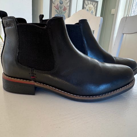 S.Oliver sko med hæler i størrelse 37. Skoene har rund tå og mellomhøy blokkhæl med rillet såle. Overdelen er i denimliknende tekstil med kontrastsømmer. Innvendig såle er polstret for økt komfort, og fôr har stripet mønster. Passer til hverdagsbruk og enklere penere anledninger.