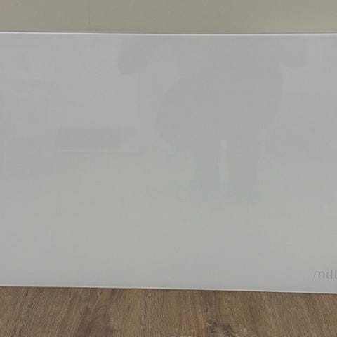 Mill panelovn med glasspanel i hvit farge. 900 W. Veggfeste følger med. WiFi generasjon 2