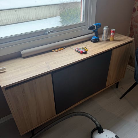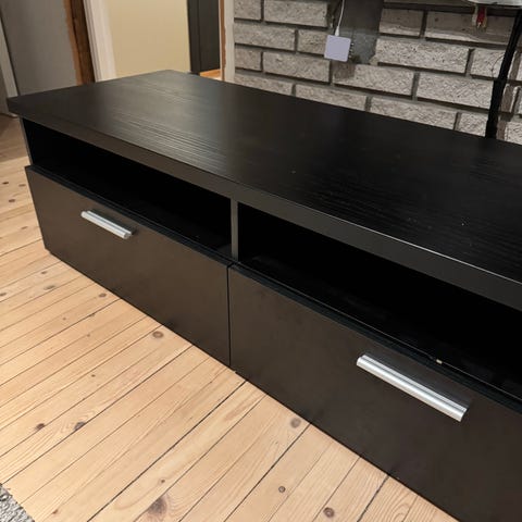 Pen stereobenk / tv benk med skap og hyller gis bort
