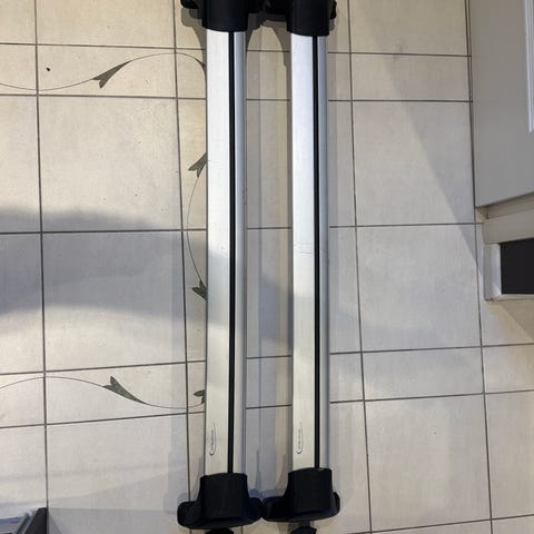 Kia takstativ i aluminium i sølvfarge med svarte plastføtter. Tidligere brukt til Kia Sportsge 2015 modell. Eksakt modelltilpasning til bil bør kontrolleres mot biltype og årsmodell før bruk.