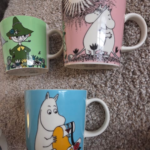 Moomin/Mummi krus, ubrukt, med lapp på.