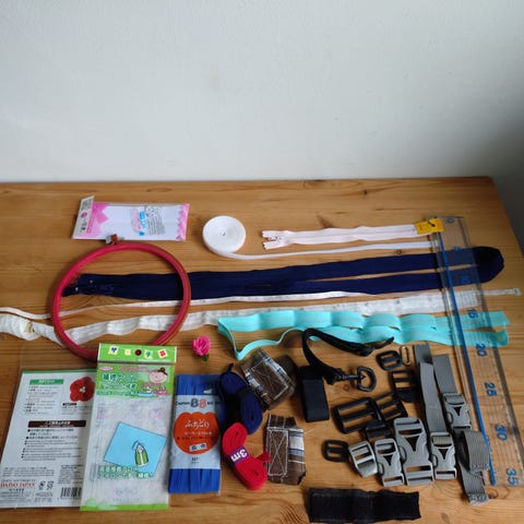 Prym sytilbehør pakke med diverse utstyr til søm og reparasjon. Inneholder blant annet grønt målebånd, flere kort med trykknapper i ulike størrelser, synåler, knappenåler i eske, liten saks og sytråd. Egnet til generelt håndarbeid, tilpasning av klær og annet sømarbeid.