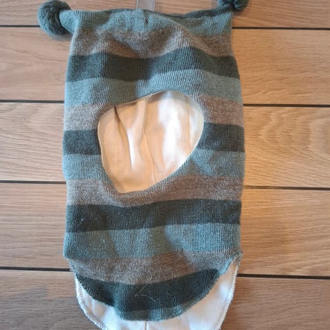 Kivat ullbalaklava for barn i størrelse 2 . Tilsvarer 2-4 år. Egnet til bruk på kjølige dager og som ytterste lag på hodet under utelek og tur da den isolerer godt mot vær og vind.