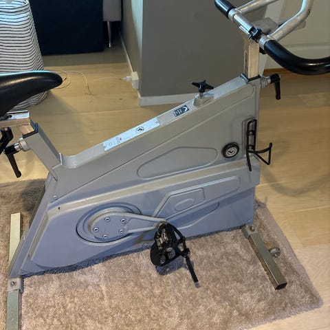 Pedalene har tåreimer, og rammen har transporthjul foran for enklere flytting. Egner seg til innendørs kondisjons- og intervalltrening hjemme. På styret sitter en enkel treningscomputer som viser blant annet tid og omdreininger per minutt (RPM). Denne fungerer ikke akkurat nå, men kan trolig lett fikses!