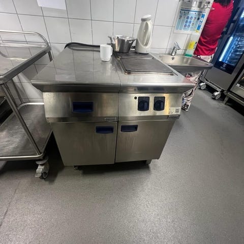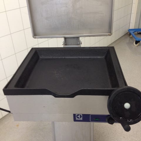 Vår skole skal skifte ut vår elektriske stekepanne med en større modell, Vi selger den gamle som er brukes regelmessig.