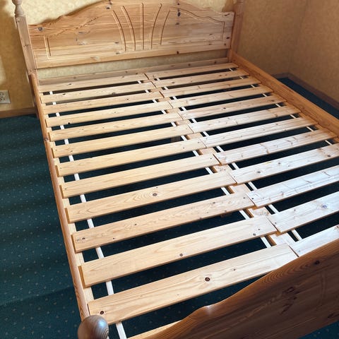 Dobbeltseng, selges med eller uten madrasser. Heltre furu.