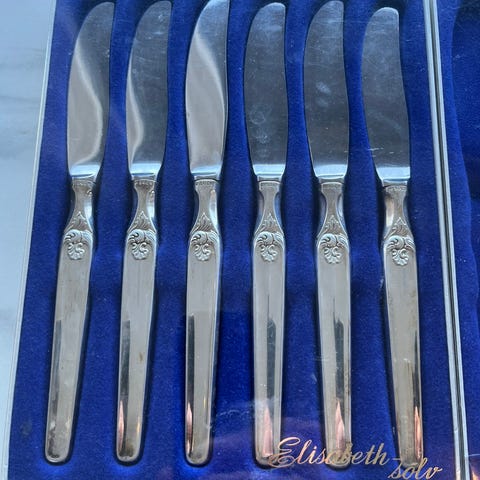 9 stk Elisabeth sølv 830s kniver, pent brukt tilslags kr 550,- pr stk Betales med vips, kan sendes selges etter det antall du trenger.