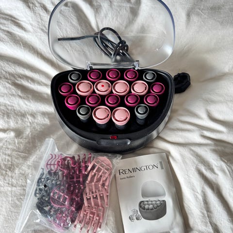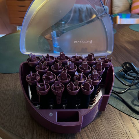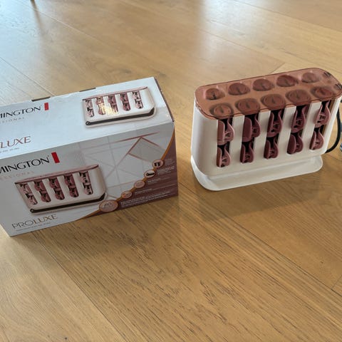 Carmen curler 20 stk varmespoler er et sett med elektriske hårspoler i plast, levert i en oppbevarings- og varmeboks. Tre størrelser på spolene. Enheten kobles til strøm for oppvarming av spolene før bruk. Spolene har piggete overflate for bedre feste i håret. Festebøyler i tre størrelser følger med. Produktet er egnet til styling og forming av krøller og bølger i håret.
