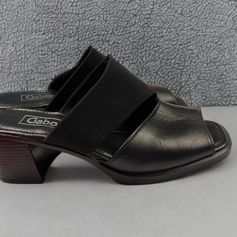 Modellen har åpen tå (peep-toe), stropper med strikk bak hælen og en solid hæl på 3,5-4 cm som gir god støtte og komfort. Klassisk og tidløs stil som passer til både hverdags og penere anledninger.