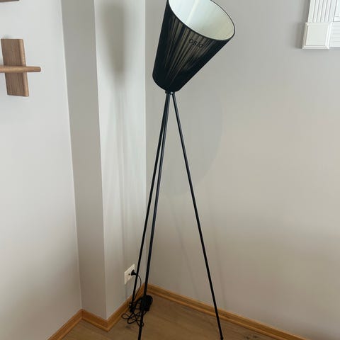En stilren stålampe med industriell karakter. Kjegleformet skjerm i matt svart, lakkert stål med kobber innvendig. Skjermen kan justeres opp og ned slik at lysretningen kan justeres og enkelt skape riktig stemning i rommet.