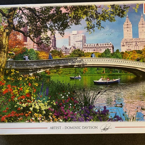 Dominic Davison puslespill . Motivene viser blant annet landlige hus, bro over elv og ulike bygninger i natur- og bymiljø. Egnet som puslespillaktivitet for voksne og større barn, og kan også brukes som veggdekorasjon når det er ferdig lagt.