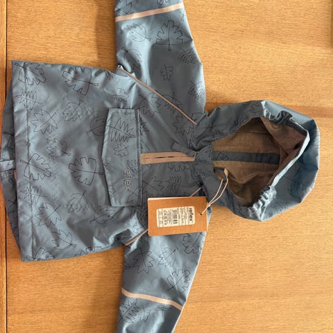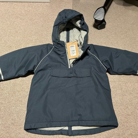 Kjøpt ny i fjor. Kun brukt et par ganger før den ble for liten. Som ny. Ytterjakken er tynn og foret med jersey. Vindtett og vanntett i følge nettsiden til barnas hus.