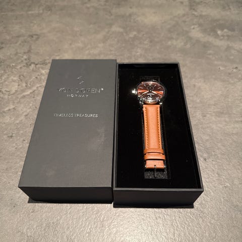 Kjøpte klokken over nyttår, og har siden kun testet den på lanken en gang. Jeg syns den ble for liten for mine ganske kraftige håndledd, så velger derfor å la denne gå videre til noen som gir den brukstid!