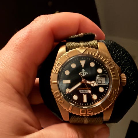 Kjøpt på Thune i Bjørvika 09.06.2021. Modellen var ikke tilgjengelig i Norge med denne finishen, så Thune bestile den inn for meg. Selges da den har blitt lite brukt de siste 2 årene. Klokken fremstår som pent brukt.