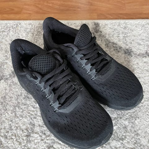 Nike ZoomX Vaporfly 3 løpesko i størrelse 44 (EU). Modellen er laget for løping og har overdel i pustende meshmateriale i svart farge. Skoene har ZoomX-skum i mellomsålen og en karakteristisk yttersåle med gule detaljer for godt grep. Snøring for justering av passform. Egnet til løping på vei og trening der det ønskes en lett og responsiv løpesko.