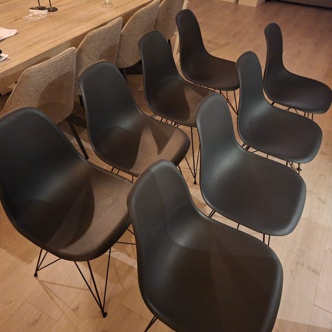 Selger 6 stk Stockholm stoler i sort. Selges for 1000kr stykk. Dette er en utgått modell som ikke lenger er i produksjon. Stolene har et stilrent og tidløst design som passer like godt rundt spisebordet som i møterom eller som ekstra sitteplasser.