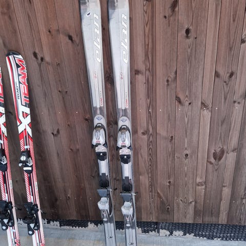 K2 alpinski i rød og svart farge. Skiene er utstyrt med Tyrolia-bindinger, justerbare. Lengden på skiene er 160 cm egner seg for ungdom eller voksne avhengig av høyde og ferdighetsnivå. Noe bruksmerker kan forekomme. Nylig kjøpt brukt av meg, men de ble for lange for meg.