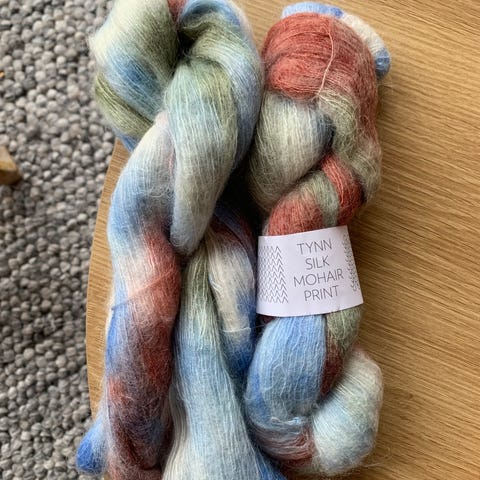 Cowgirlblues silk mohair 100 gram. I fargen Signs of spring. Håndfarget.