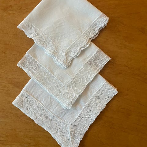 3 pyntelommetørkler / lommetørkler i bomull
