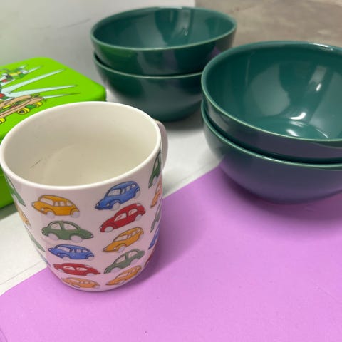 Kjøkkenutstyr grønnsakskutter , boller , kopper , metallboks , oppevaring