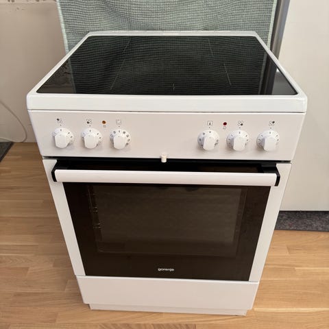 Gorenje keramisk komfyr i hvit utførelse. Komfyren har keramisk koketopp og integrert stekeovn med front i glass og hvit ramme. Betjening skjer via dreieknapper og digitalt display på fronten. Passer til innplassering på kjøkken med standard komfyrbredde. Egnet til vanlig matlaging og baking i husholdning.