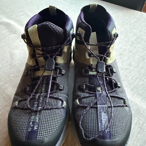 On cloud Gore-Tex tursko i størrelse 37. Skoene er laget for fottur og har vanntett Gore-Tex-membran. Overdelen er i blått materiale med lisser, og sålen har grovt mønster som gir godt grep på variert underlag. Passer til tur og hverdagsbruk i vått og tørt vær. Brukt et par ganger bare. De er fantastiske på! Selges fordi jeg har mange sko. Nyprisen var ca 1800kr.