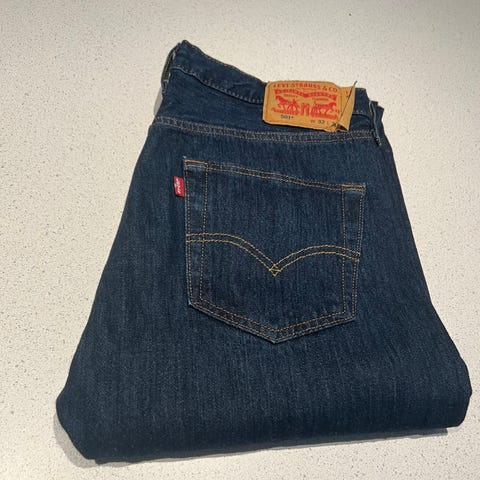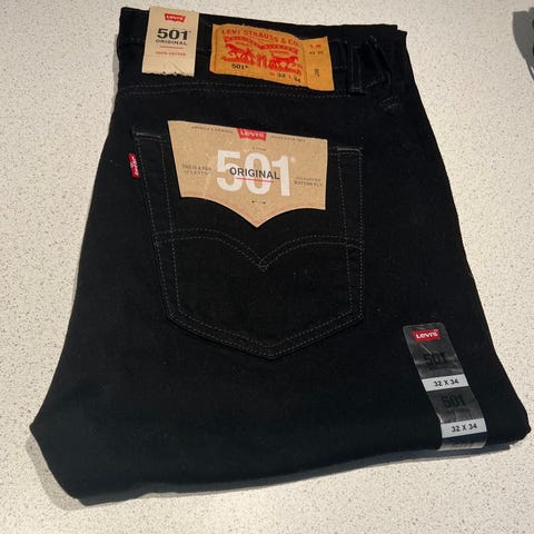 Ubrukte Levi’s 501, W32 L34 var litt for trange for meg.