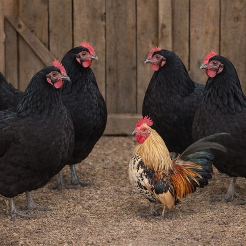 Hanen og de hvite hønene er renraset hvit dverg silke, hønene er ikke i slekt med hanen.