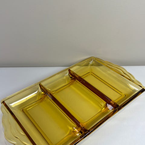 pressglass, gul glasskål, vintage glass, retro skål, glasskål på fot, liten skål, amber glass, retro interiør, vintage skål, dekor skål, pressglass skål