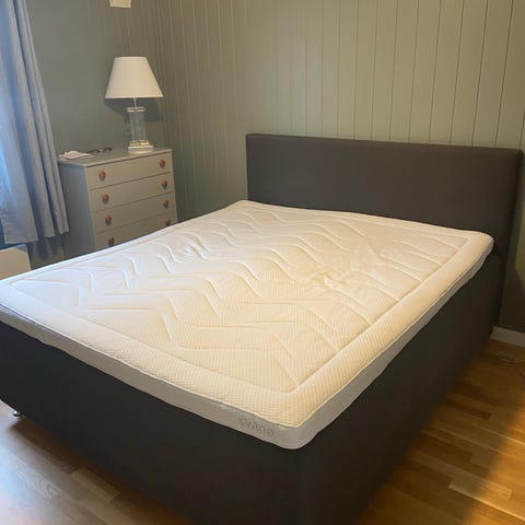 Kan også følge med overmadrass hvis ønskelig , den er 8cm tykk og veldig god med vaskbart trekk både på overmadrass og madrassen på sengen.