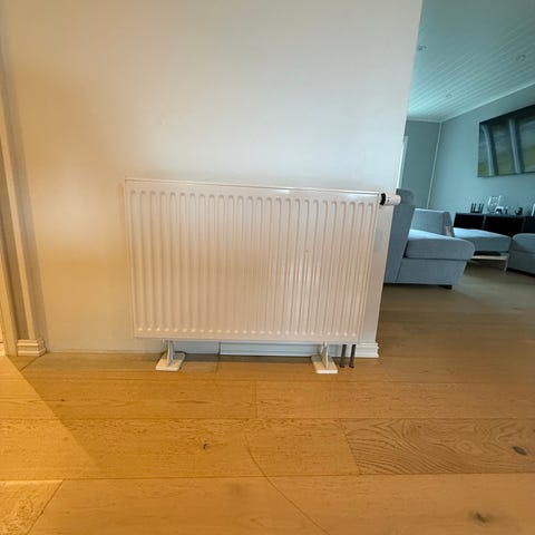 Zehnder radiator i hvit utførelse. Panelradiator med horisontale profiler og tilkoblingspunkter på siden/øverst. Radiatoren er beregnet for vannbåren varme og monteres på vegg med medfølgende fester. Passer til oppvarming av innendørs rom i bolig eller tilsvarende bruksområder.