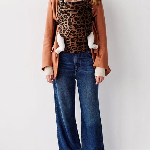 Artipoppe bæresele med leopardmønster.