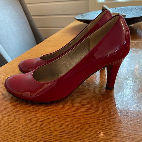 GABOR pensko str 37,5 rød semsket skinn og svart glatt hælspark
