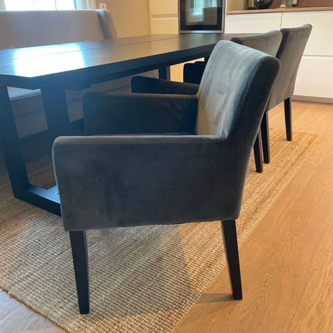 4 stk pene stoler selges for 2000 kr samlet eller 600 per stol. Stolene har nesten ingen synlige bruksmerker. Ny pris er mellom 1200-1300 per stol. Fargen heter cognac og stolene er i skinn. Må hentes.
