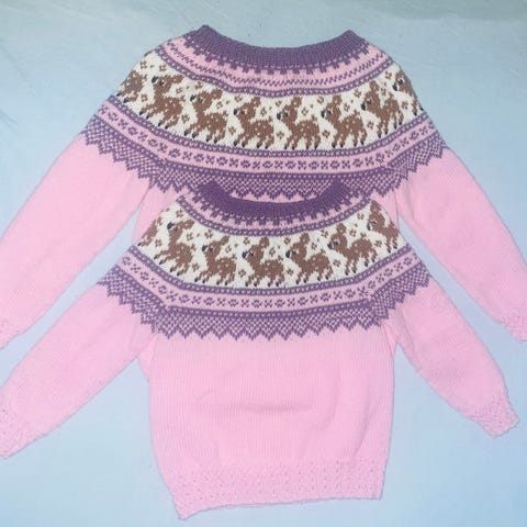 Ny hjemmestrikket Bambi/Mariusgenser m rådyr,1-2 år,(86/92)100% tm ull