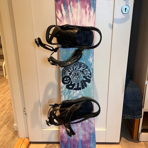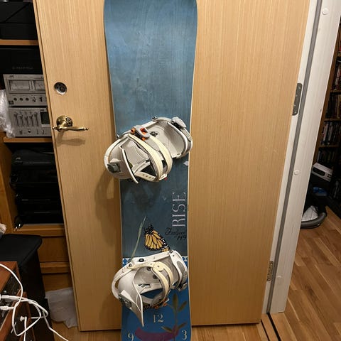 Montert med Burton Diode Carbon-bindinger. Dette er en tidligere toppmodell fra Burton, med karbonkonstruksjon for lav vekt og maksimal respons. Veldig direkte kraftoverføring og høy presisjon – perfekt match til Custom Restricted.