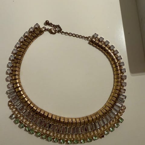 Lot med 9 halskjeder i forskjellige farger.