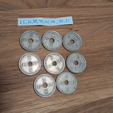 Inneholder 10øre, 25øre, 50øre og 1kr mynter.